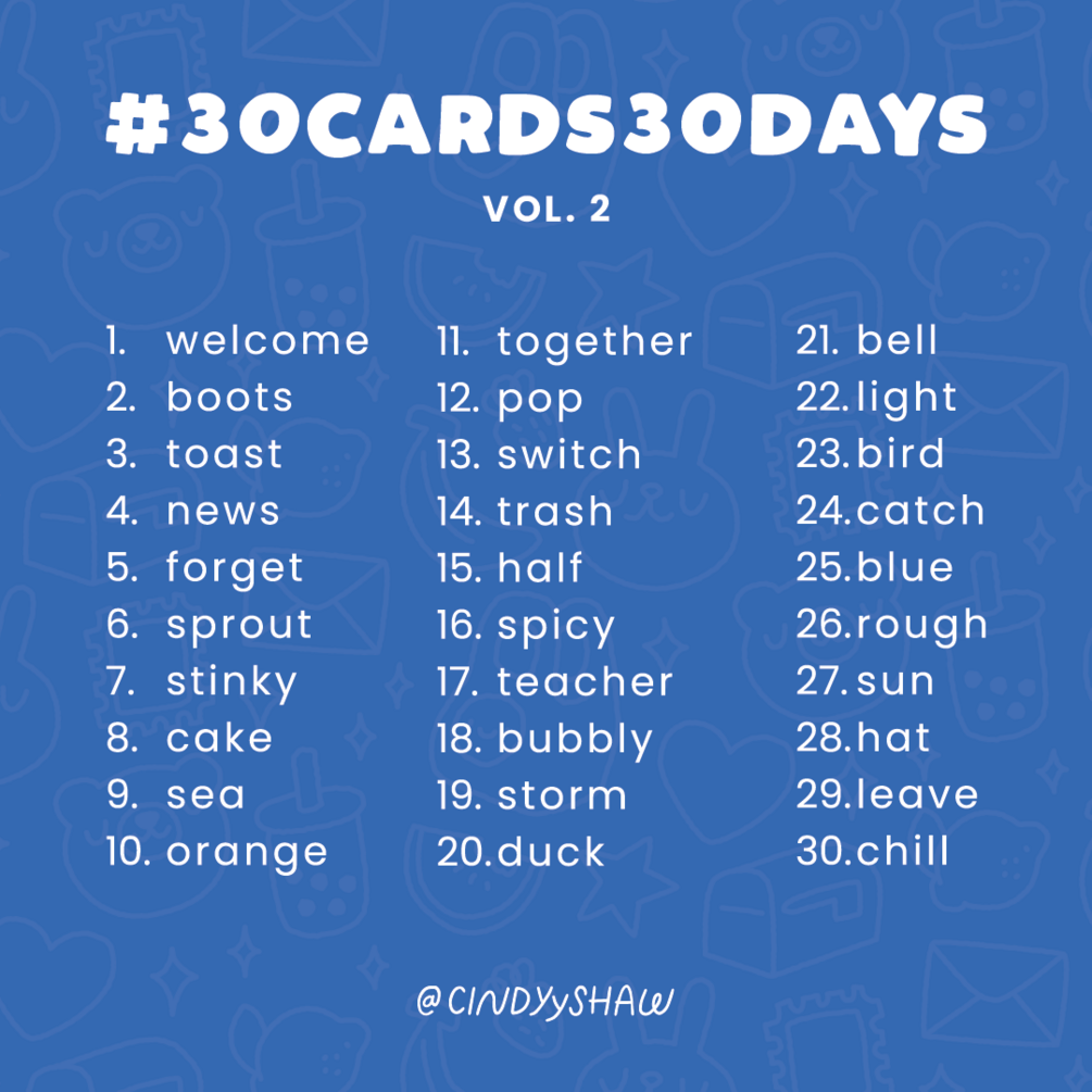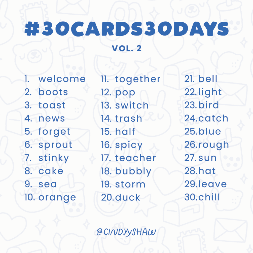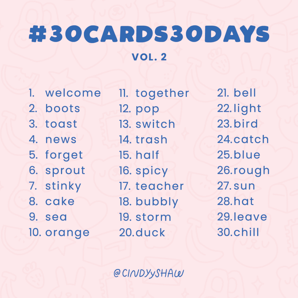 Welcome to #30cards30days Volume 2! This kit includes prompt lists and mockup images so you don't need to screenshot and crop anything.